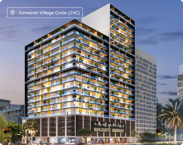 Binghatti Emerland in Jumeirah Village Circle is ideal for families. It’s also a great option for those who come to Dubai for a business trip or for permanent residence. Purchasing a studio or an apartment in Jumeirah Village Circle is a good investment as the ROI in the area is around 6.5% with studios being among the most popular units to rent and for sale.